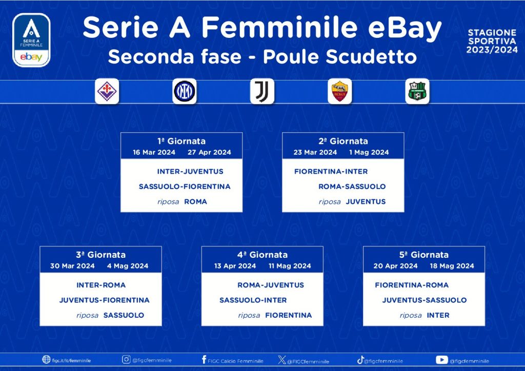 E’ stato sorteggiato il calendario della poule scudetto femminile: l’Inter sfiderà subito la Juventus