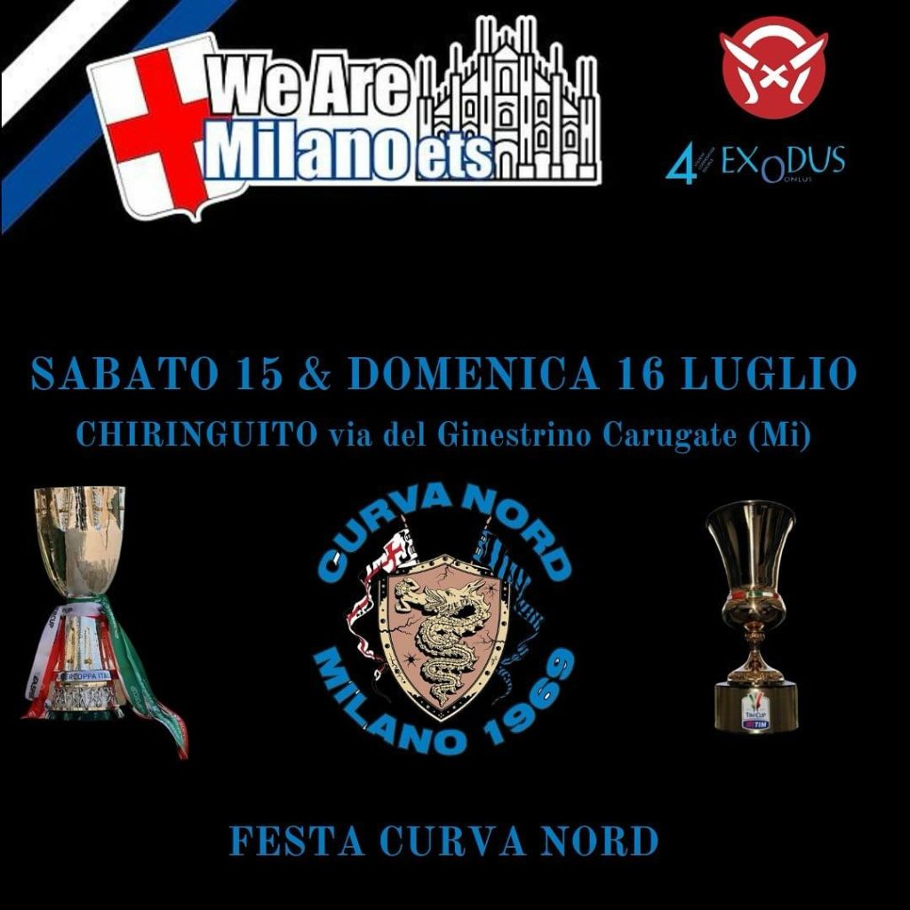 Come reso noto dalla stessa Curva Nord dell’Inter su Instagram, oggi sabato 15 e domani 16 luglio si terrà una festa per i tifosi.