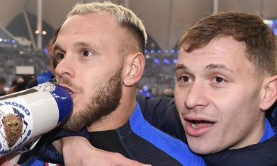 Eccoli durante la sessione d’allenamento odierna dell’Inter, alla vigilia della finale di Supercoppa col Napoli. Benchè sia una competizione molto sentita, i due sorridono e non rinunciano a farsi scherzi a vicenda.