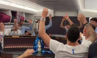 Inter, la festa SFRENATA sull’aereo con la Supercoppa Italiana appena vinta in finale contro il Napoli: il VIDEO social
