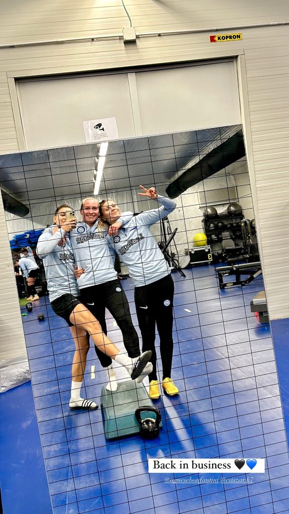 Attraverso Instagram, Michela Cambiaghi mostra che le Inter Women sono tornate a lavoro, in vista dell’impegno di campionato contro il Sassuolo, il 14 gennaio.