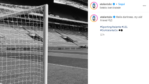 Sul proprio profilo Instagram, l’Atalanta ha pubblicato una foto con i pali dello stadio Alvalade (con filtro in bianconero) sulle note di “𝘏𝘦𝘭𝘭𝘰 𝘥𝘢𝘳𝘬𝘯𝘦𝘴𝘴, 𝘮𝘺 𝘰𝘭𝘥 𝘧𝘳𝘪𝘦𝘯𝘥”. Riderci sopra per poi ripartire più forte di sempre.