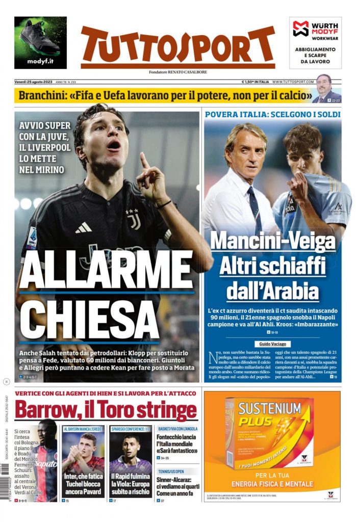 Le prime pagine dei quotidiani sportivi di oggi in edicola: Tuttosport, Gazzetta dello Sport e Corriere dello Sport