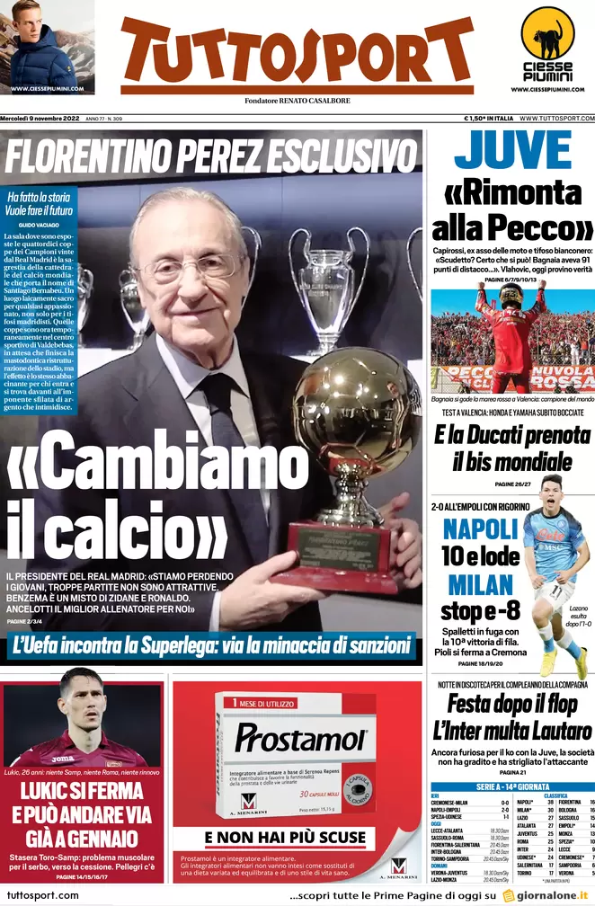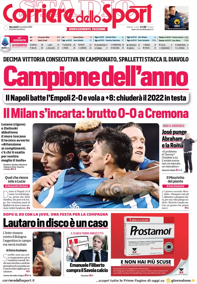 L’articolo Le prime pagine dei quotidiani sportivi di oggi – 9 novembre proviene da Calcio News 24.