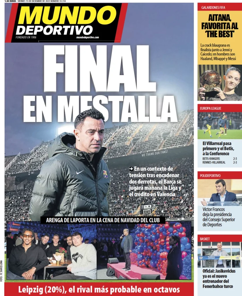 Ecco una rassegna stampa delle prime pagine sportive internazionali di oggi, 15 dicembre, in edicola.