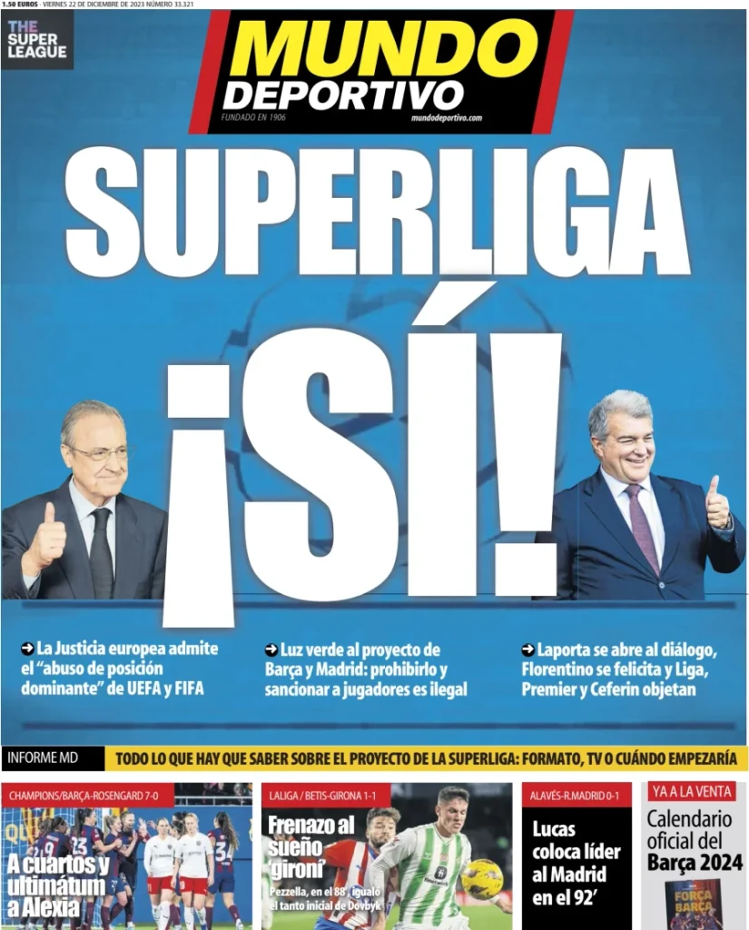 Le prime pagine sportive internazionali di oggi, 22 dicembre: AS, L’Equipe, Mundo Deportivo, Marca, Sport, A Bola