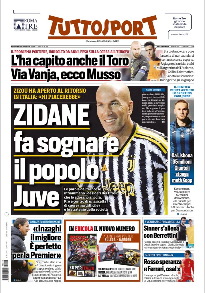 Una rassegna stampa delle prime pagine sportive nazionali di oggi, 28 febbraio: Gazzetta dello Sport, Corriere dello Sport, Tuttosport