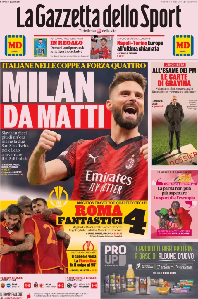 Le Prime Pagine Sportive Nazionali – 8 marzo