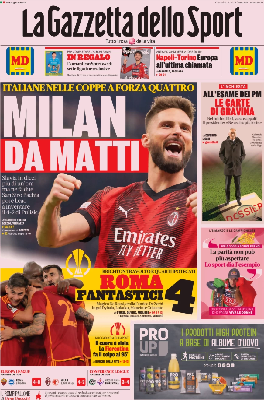 La Gazzetta dello Sport, Il Corriere dello Sport e Tuttosport rappresentano i principali quotidiani sportivi in Italia. Punto di riferimento ogni giorno tanto per gli addetti ai lavori quanto per gli appassionati di calcio (e non soltanto). Sono decine di migliaia le copie vendute tutte le mattine in edicola ma un’anteprima dei principali contenuti può essere consultata già dalla sera precedente.