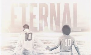 Il Napoli ricorda Pelé con una bellissima grafica: O’Ney e Maradona che si tengono la mano con lo sguardo verso l’orizzonte e il 10 sulla schiena