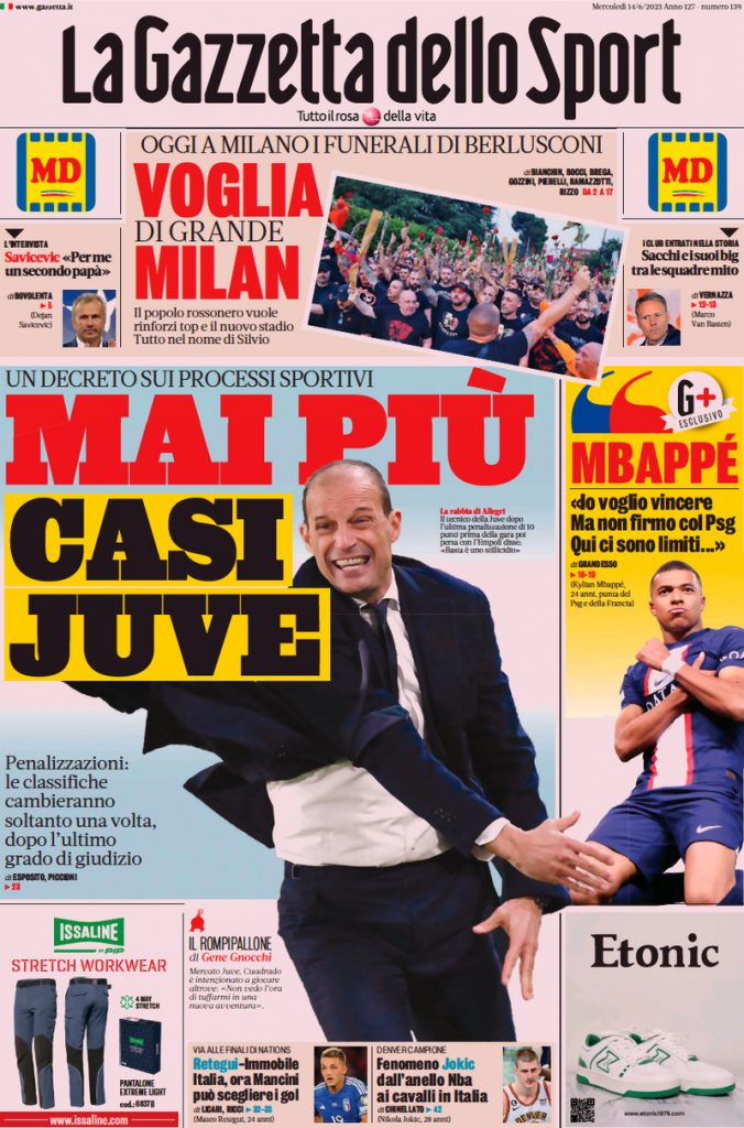 Rassegna stampa: prime pagine quotidiani sportivi – 14 giugno 2023. Le prime pagine di oggi, incentrate sul calciomercato