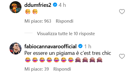 Non la pensano così Dumfries e Cannavaro, che sotto il post hanno criticato la scelta del centravanti francese. Cannavaro in particolare: